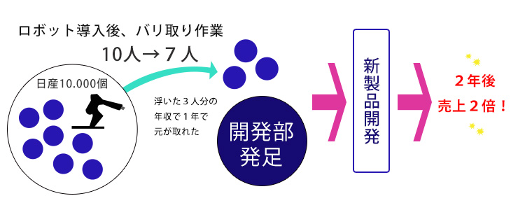 3人分の年収から考えても1年で元を取ってしまったA社様は、その人員で今まで会社になかった「開発部」を設立。